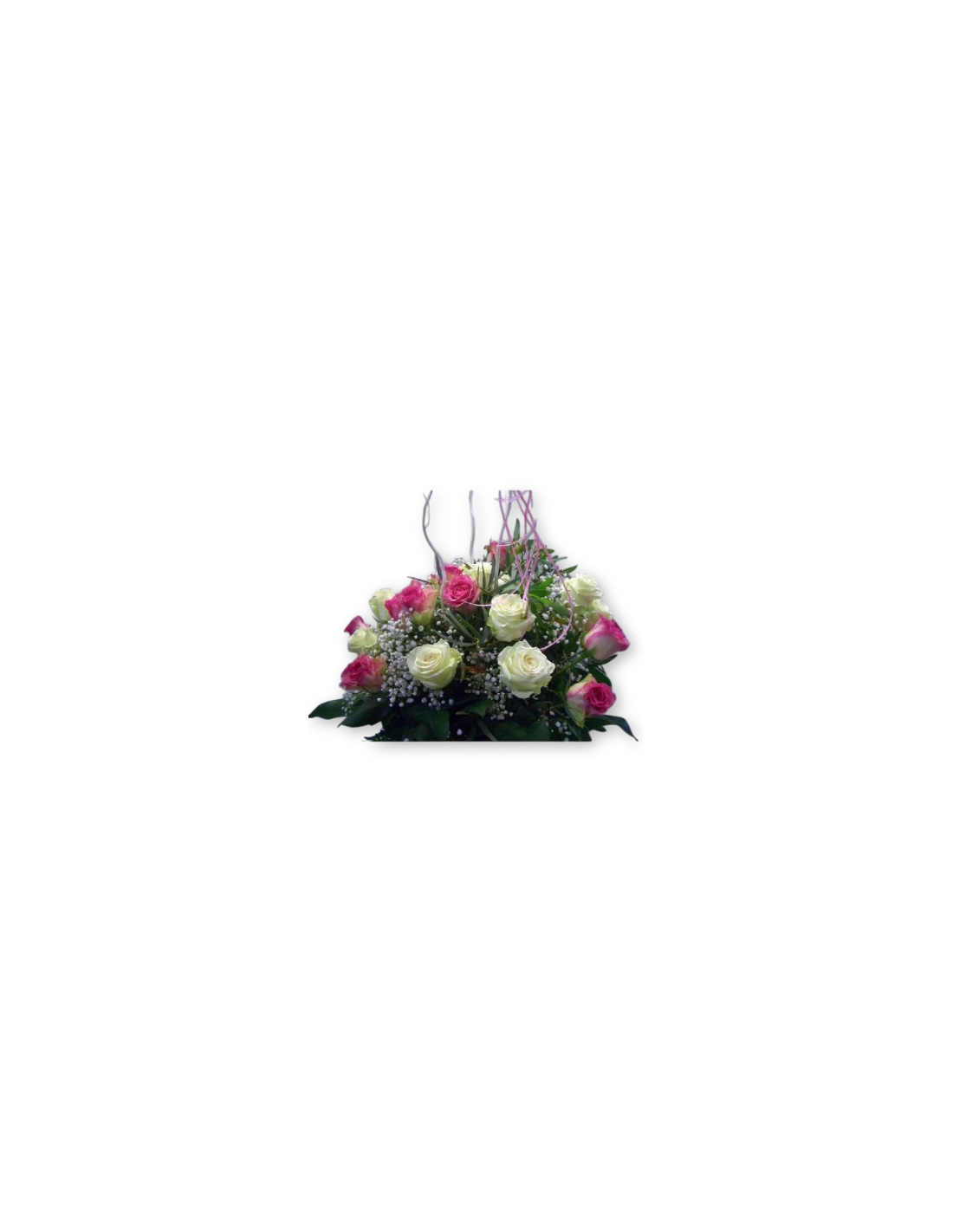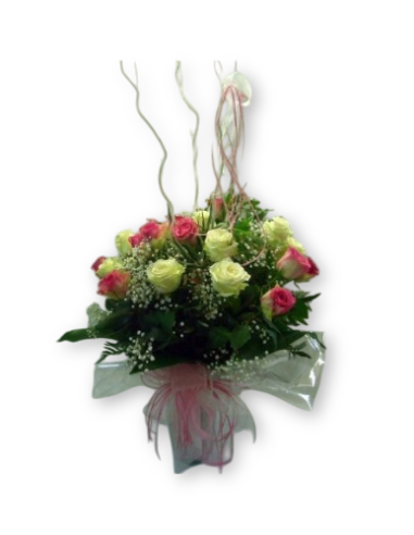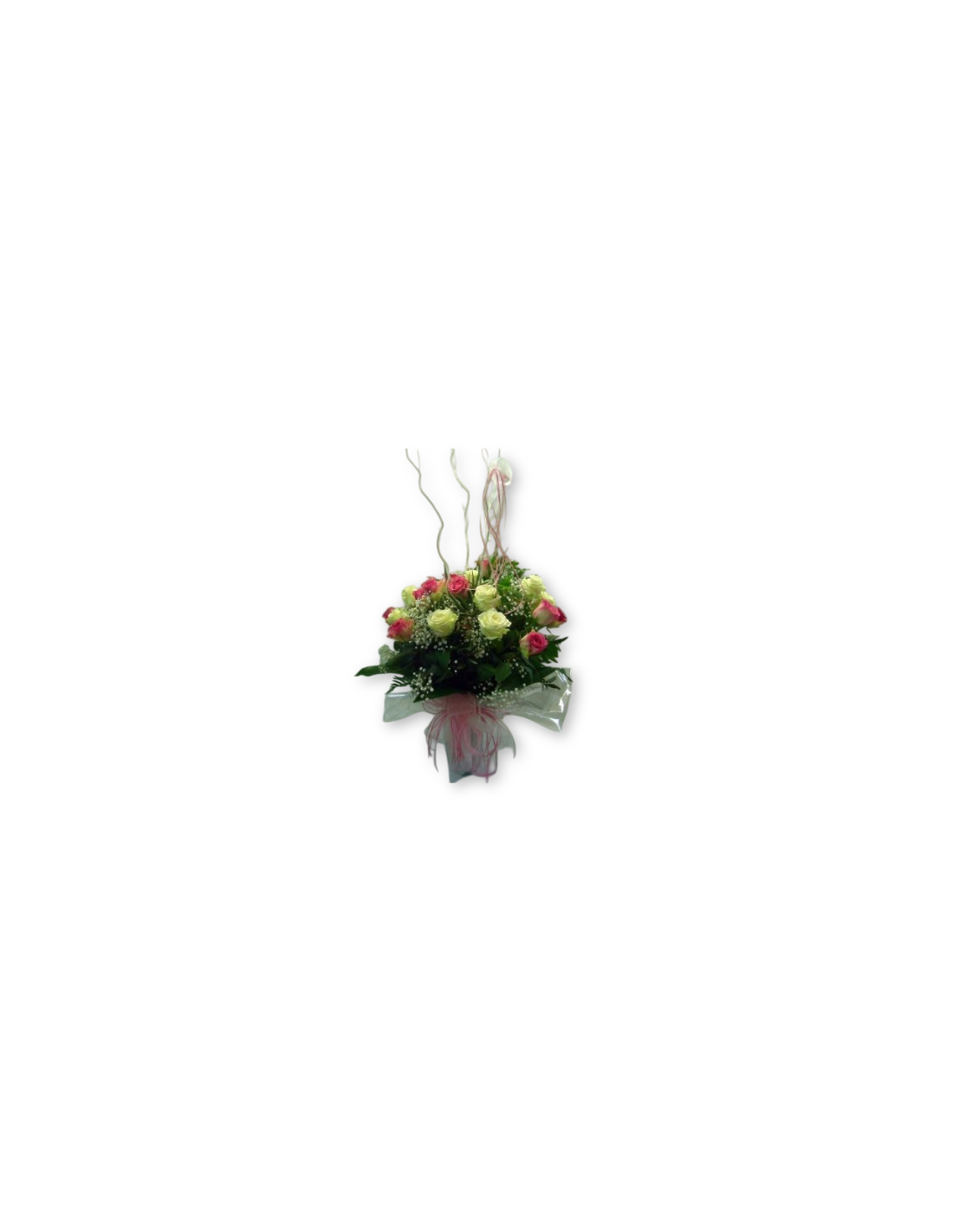Ram de 18 roses blanques i roses amb gerro de vidre.